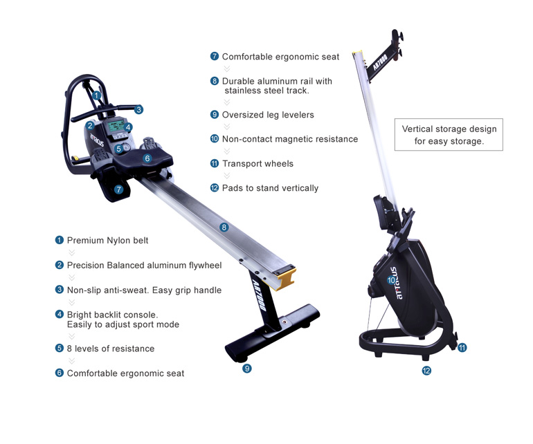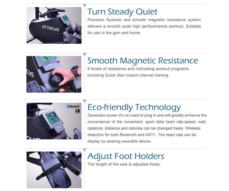 Computer Display | Total /Target Distance 500m/1000m Total /Target Calories Total /Target Time Avg. /Max. Heart Rate, Heart Rate % Avg. /Max. SPM, Strokes Avg. /Max. Watt Resistance Level ANT+ / BLE transmission Battery Level |