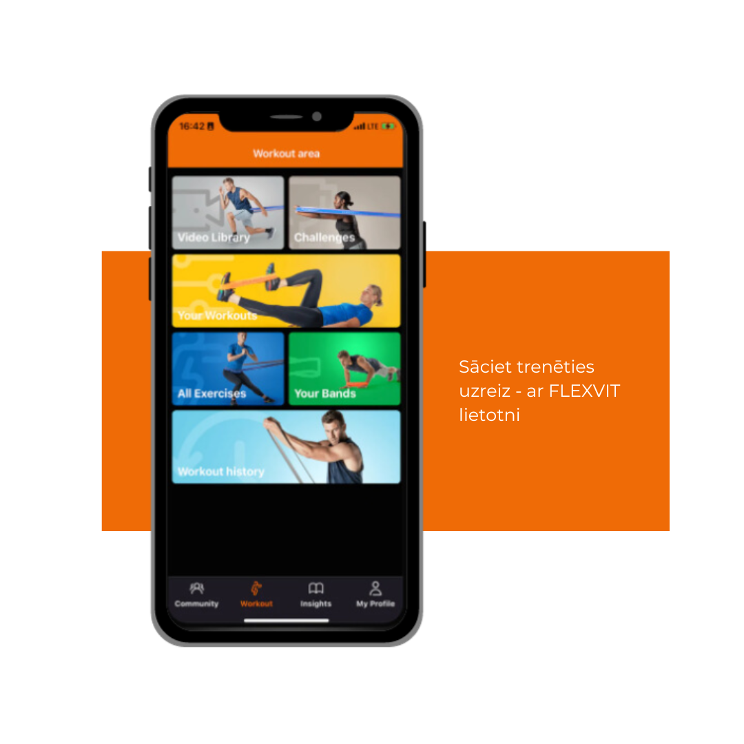 Kļūstiet par daļu no FLEXVIT ģimenes un trenējieties ar bezmaksas FLEXVIT lietotni! Izmantojot FLEXVIT lietotni, jums ir pieejami vairāk nekā 300 vingrinājumi ar pretestības lentu, kurus varat salikt kopā savam treniņam! App Store un Google Play veikalā jūsu viedtālrunim: atklājiet jaunus vingrinājumus un trenējieties ar mūsu funkcionālajiem treniņiem! Un labākais no visiem: Kopā ar FLEXVIT kopienu mēs pastāvīgi pilnveidojam savu vingrinājumu datubāzi!